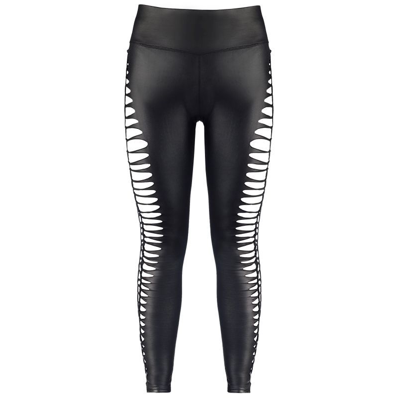 Elegant and super sexy stretch wetlook leggings for that special moment. The slashed side cut outs further enhance the provocative nature of this exquisite piece.